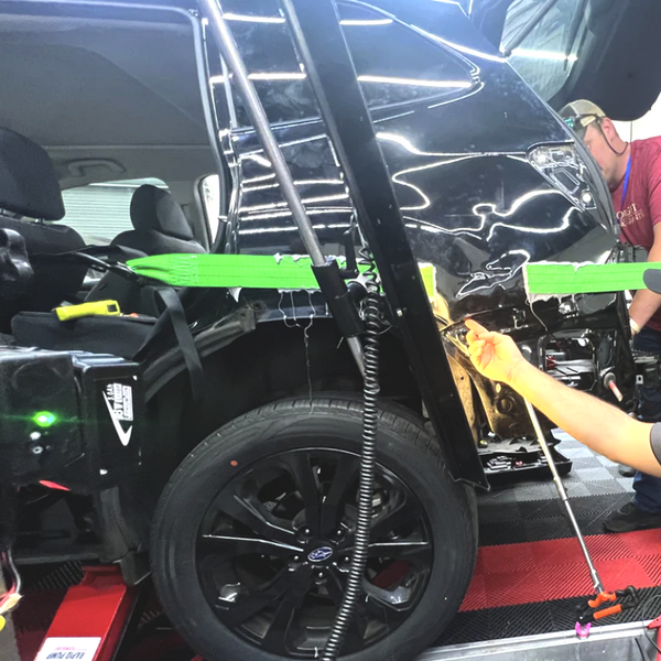 Laterale Spannung wird in modernen Reparaturtechniken immer wichtiger. Jetzt ist der Moment, sie anzuwenden. Bei Blackplague hat man festgestellt, dass Spanngurte eine der effektivsten Methoden sind, um kontrollierte Kraft auf ein Panel auszuüben, während sie sich gleichzeitig schnell und einfach entfernen lassen. Kleben Sie die Spanngurte auf das Metall und bringen Sie sie auf Spannung, um das Metall wieder in seine Form zu bringen.
