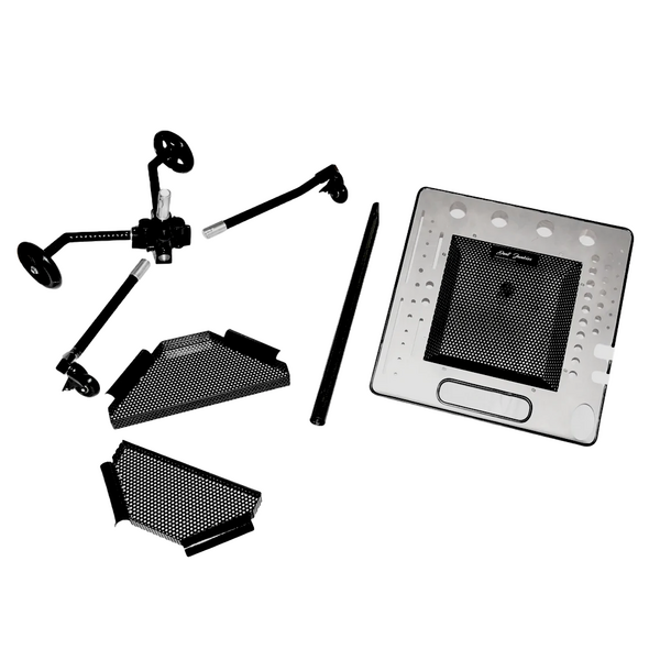 Die großzügige Arbeitsfläche mit mehreren Schlitzen hält wichtige PDR-Werkzeuge stets griffbereit, darunter Hebelstangen, Hämmer, Knockdowns und Beleuchtungszubehör. Eine belüftete, perforierte Mittelablage reduziert Staub- und Schmutzablagerungen und sorgt für eine saubere und organisierte Arbeitsumgebung während der Reparatur.