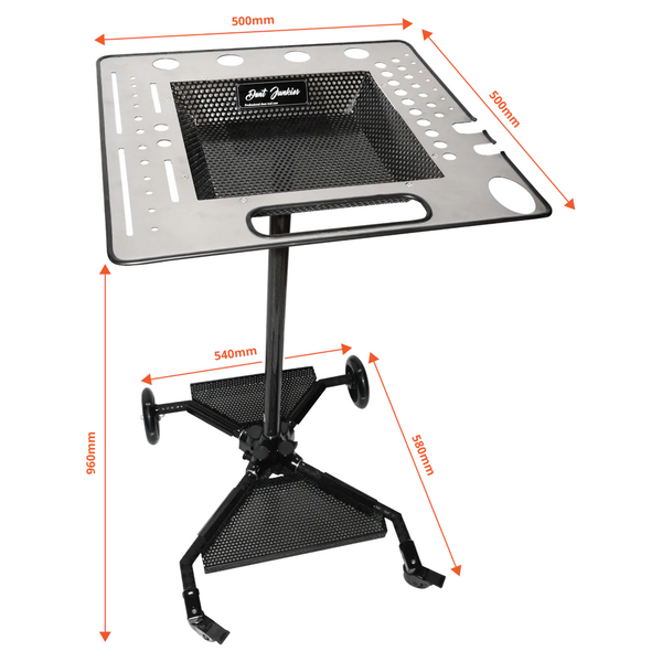 Der DJ Cart von Dent Junkies ist eine professionelle Arbeitsstation, die speziell für moderne PDR-Techniker (lackschadenfreie Ausbeultechnik) entwickelt wurde. Er ist für den täglichen Einsatz in Werkstätten, mobilen PDR-Setups und Live-Trainingsumgebungen konzipiert und kombiniert Stärke, Mobilität und intelligente Werkzeugorganisation in einem kompakten System.