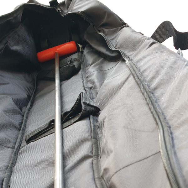 Im Inneren befindet sich ein großes Fach, das Platz für verschiedene Werkzeuge bietet, sowie fünf Klettverschlusstaschen, um Ordnung zu halten. Auf der einen Seite befinden sich drei gleich lange Taschen, ideal für Handwerkzeuge, während die andere Seite über eine größere Tasche verfügt, die perfekt für sperrigere Gegenstände geeignet ist. Die Tasche enthält zudem drei Sicherheitsgurte, um Ihre Werkzeuge während des Transports sicher zu befestigen.