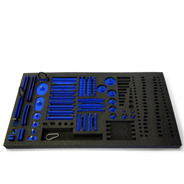 The KECO Level 1 Collision System is one of the most value packed glue pull repair kits available to body shop technicians today. This kit includes all of the tools required to complete Level 1 repairs with minimal body filler to finish. This kit handles medium and large damage with ease and precision. Tools are easily organized on the designated GPR cart. The TabPrints organizer will ensure you limit lost tabs and keep your shop looking clean and tidy.