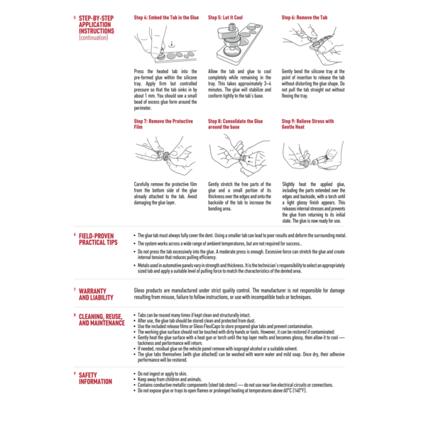 Glexo Diablo è disponibile in vassoi preformati in silicone, così puoi sempre utilizzare la giusta quantità. Diablo è compatibile con la maggior parte delle linguette per colla a freddo PDR.