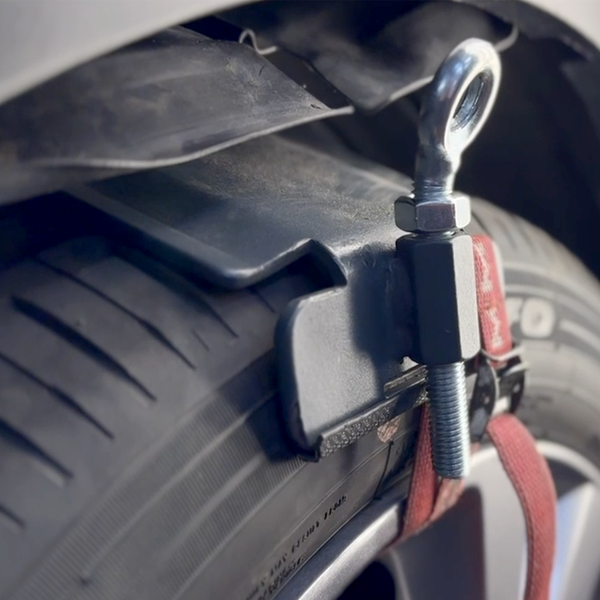 The tool has a set screw with a large eye. This allows you to reach the dent with your tool at various angles and positions. It is quick and easy to set up and it comes with a narrow 2 meter tension strap, with buckle clamp.