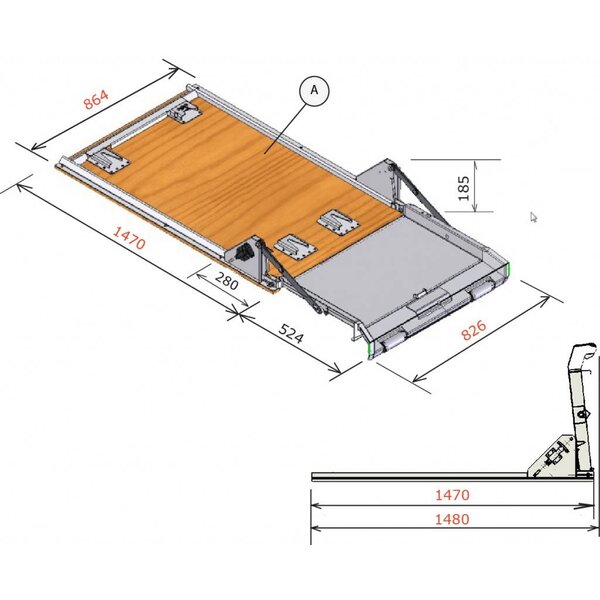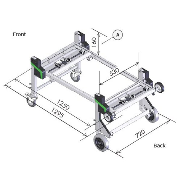 • Uma "estrutura" móvel cujas pernas podem ser dobradas automaticamente durante a carga e descarga. Vários módulos adicionais podem ser montados no chassis, como caixas de ferramentas ou peças, uma bancada de trabalho e/ou diversas máquinas e equipamentos até um peso máximo de 250 kg.