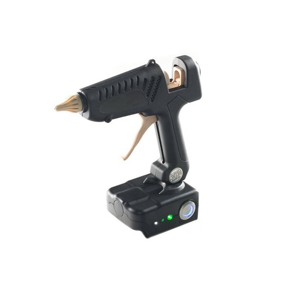 Esta pistola de cola sem fios, fabricada pela Elim A Dent, possui ajuste de temperatura dupla e uma saída USB para carregar outros dispositivos eletrónicos.