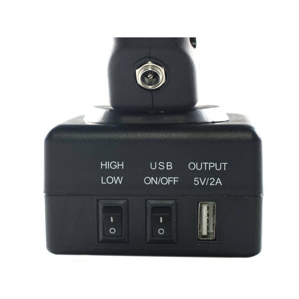 Consumo de energia: 1 hora por Ampère de duração da bateria no modo alto. Recomendamos uma bateria com capacidade de 1,5 Ampères ou superior. Esta pistola de cola é alimentada por uma bateria Makita 18V.