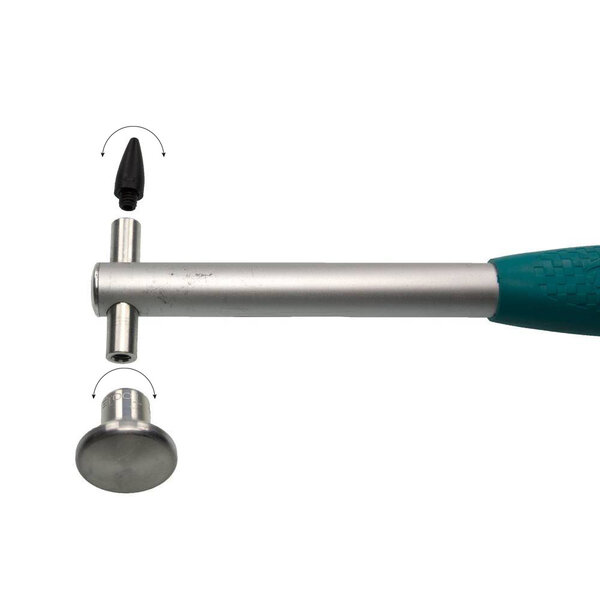 This 22 inch knockdown hammer comes with interchangeable tips on both sides of the hammers. All standard interchangeable tips will fit these hammers. The hammer comes with B4-p tips and a flat surface.