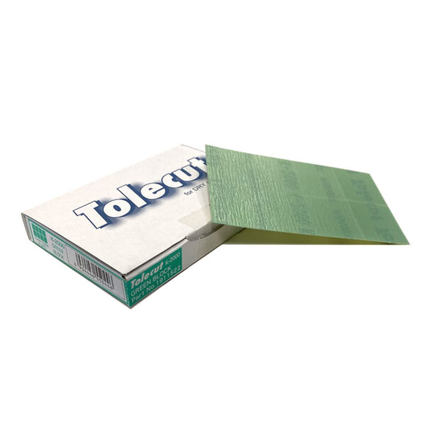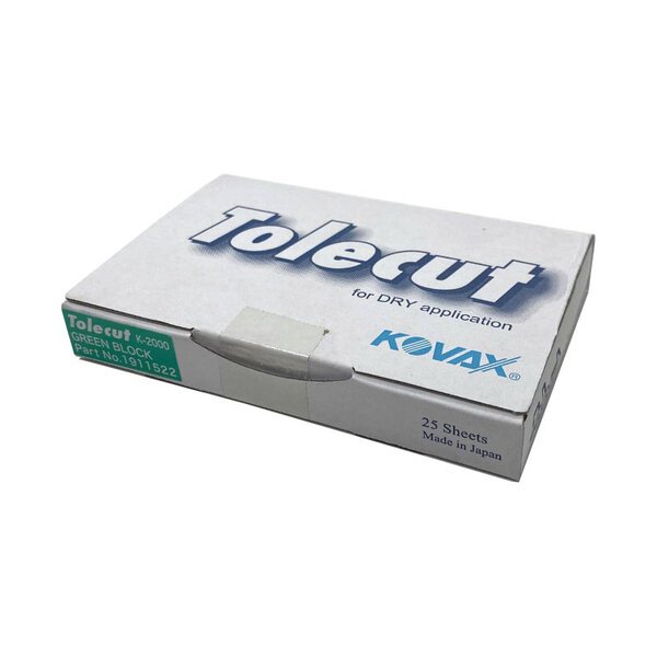 Um pacote de Kovax Tolecut contém 25 folhas com 8 tiras de lixa de 29x35 mm.