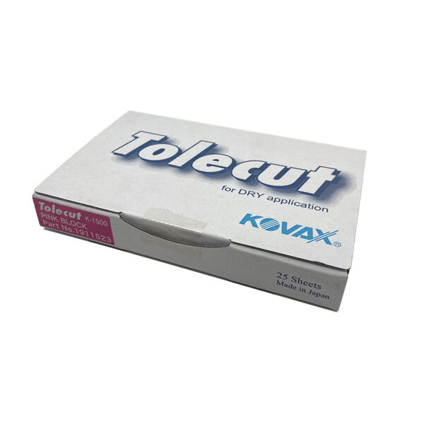 Um pacote de Kovax Tolecut contém 25 folhas com 8 tiras de lixa de 29x35 mm.