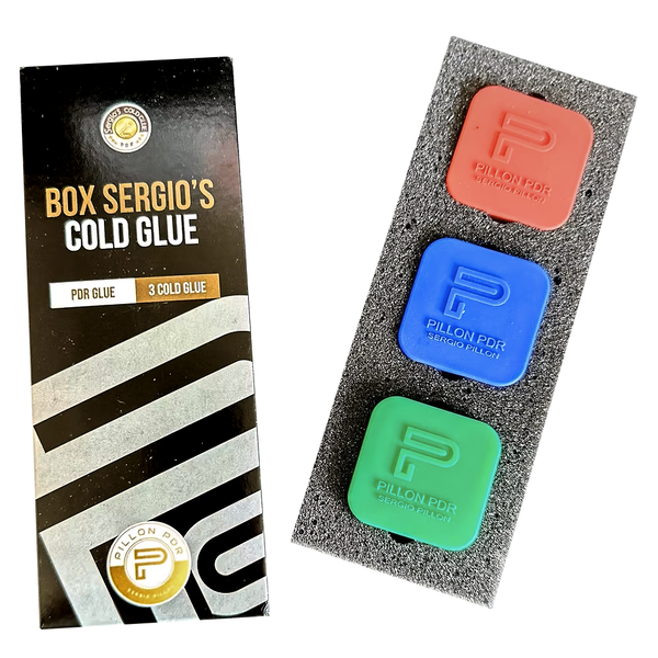This Sergio's Cold Glue Box includes three high-quality glues (Red, Green, and Blue) each designed for optimal performance in different conditions. Whether you're working in hot, cold, or moderate temperatures, this set ensures strong adhesion and efficient dent removal. Ideal for PDR professionals and bodywork repairs!