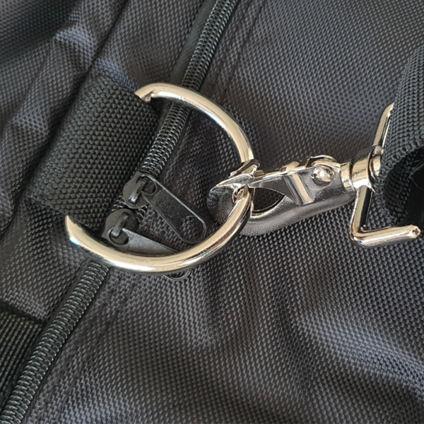 - Interior: 1 grande compartimento com 5 bolsos de velcro na lateral