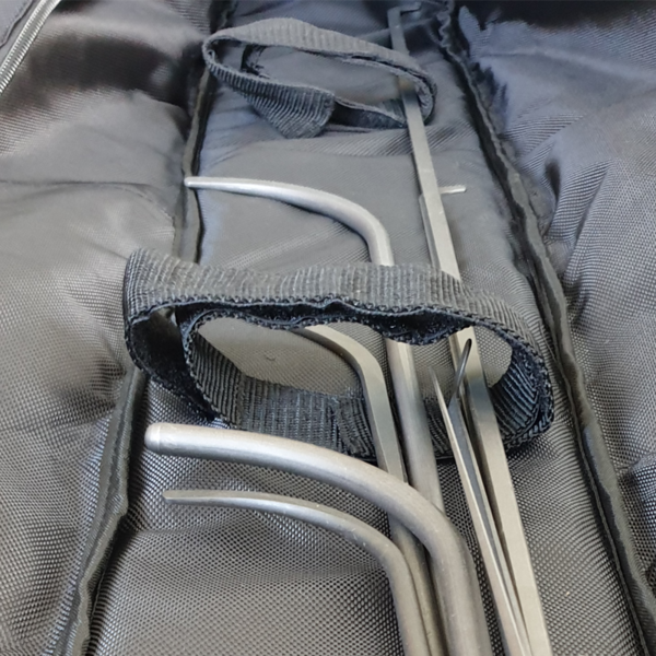No interior, encontrará um grande compartimento projetado para acomodar uma variedade de ferramentas, juntamente com cinco bolsos de Velcro para manter tudo organizado. Um lado apresenta três bolsos de comprimento igual, ideais para ferramentas manuais, enquanto o outro lado possui um bolso maior, perfeito para itens mais volumosos. A bolsa inclui também três cintas de segurança para manter as suas ferramentas firmemente no lugar durante o transporte.